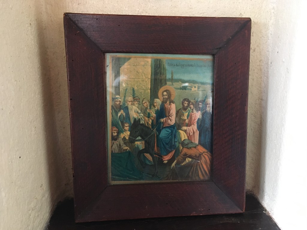 As they were driving away in their very loaded cart pulled by a horse and a cow in tow, their neighbour Anastasia Gregorievna from across the road came running out. In her old hands she was holding a small wooden Icon. Where are you going she asked why are you leaving – who is going to look after your house and who will have it when you are gone?