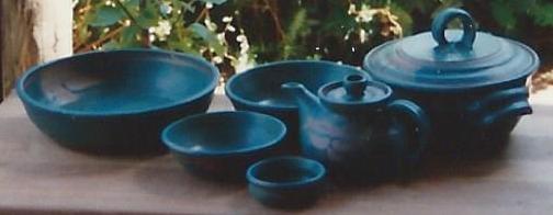 I threw mainly stoneware at that time. Developed and disciplined myself to only use three glazes. One glaze was the Japanese Tenmoku. The second was a Matt white stoneware and when used on an iron based clay threw a lovely oatmeal colour; the third was the most popular – a Matt blue throwing specks of green blue. Most glazes were mixed by us while using recipes from a great little book by Janet DeBoos called Glazes for Australian Potters.